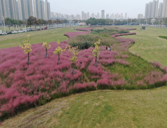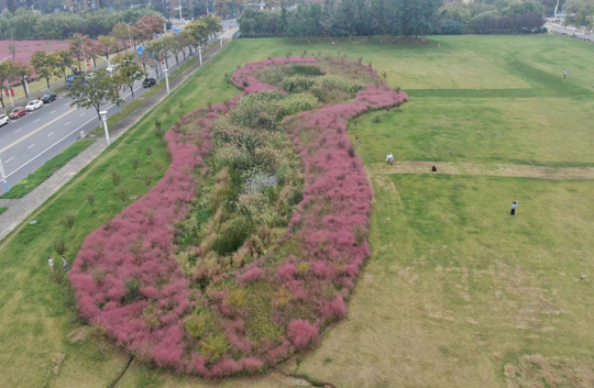 在中央商區(qū),成片的粉黛亂子草正值最佳觀賞期,云霧般的粉色花穗在陽光下輕盈搖曳,已成為市民爭相打卡的“網(wǎng)紅”景點。“粉黛亂子草觀賞性雖高,養(yǎng)護(hù)卻需格外精心。”建發(fā)公司相關(guān)負(fù)責(zé)人介紹,為維持其最佳觀賞狀態(tài),園區(qū)采取了分區(qū)、分時的精細(xì)化養(yǎng)護(hù)策略。盛花期期間,養(yǎng)護(hù)人員會精準(zhǔn)控制澆水量,避免過多水分影響花穗形態(tài);雨季則及時排水,嚴(yán)防積水導(dǎo)致爛根。同時,還安排了專人全天巡視,引導(dǎo)游客在指定區(qū)域文明觀賞,并對局部受損區(qū)域?qū)嵤?ldquo;點對點”修復(fù),確保每一株粉黛都能以最美姿態(tài),展現(xiàn)秋天的溫柔與浪漫。